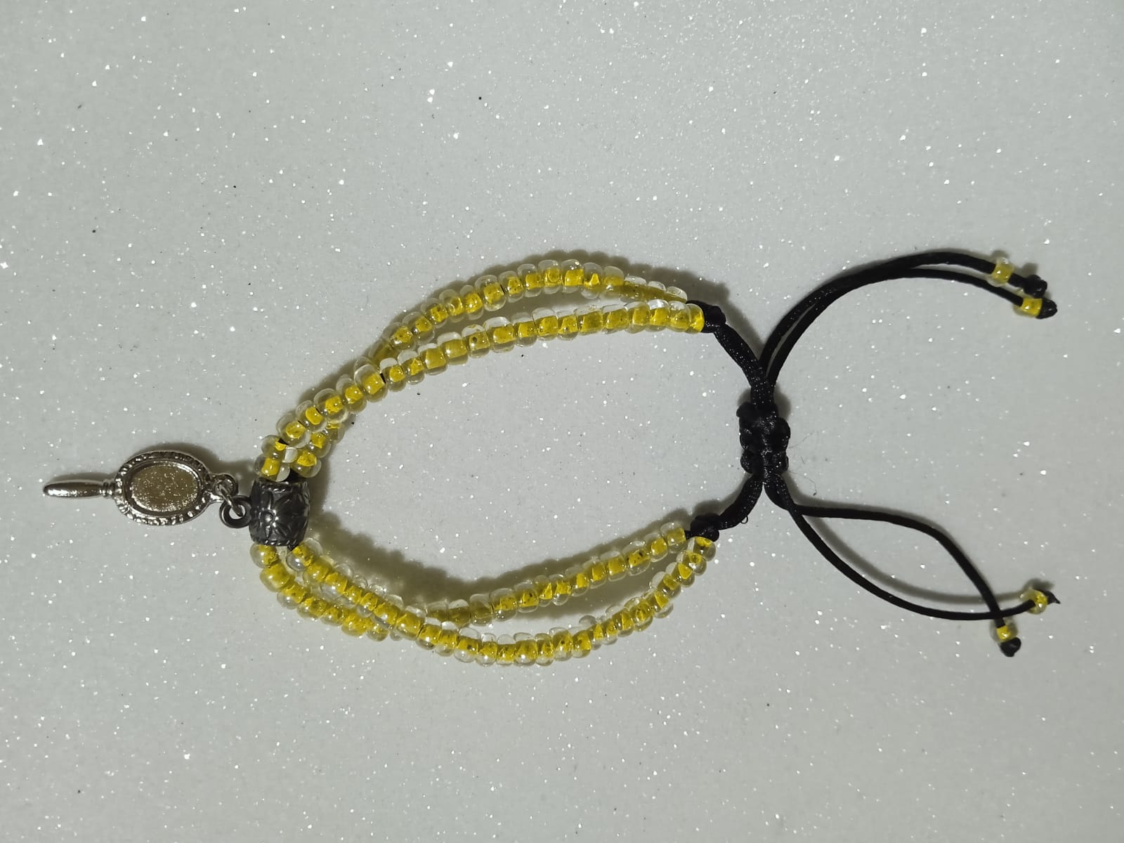 Linda pulseira feita com cordão encerado ( cordoné) e pingente, com regulagem