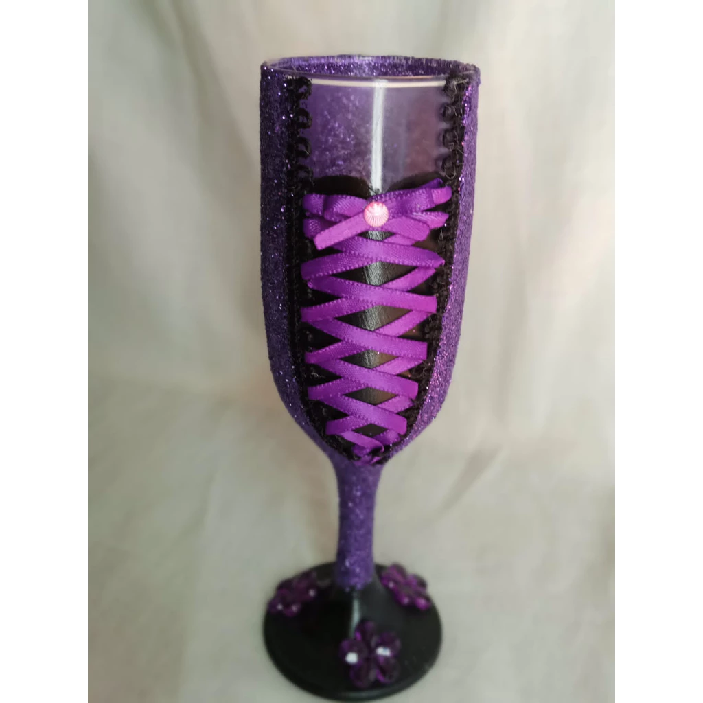 - Taça de vidro 20cm decorada com flor na cor roxa